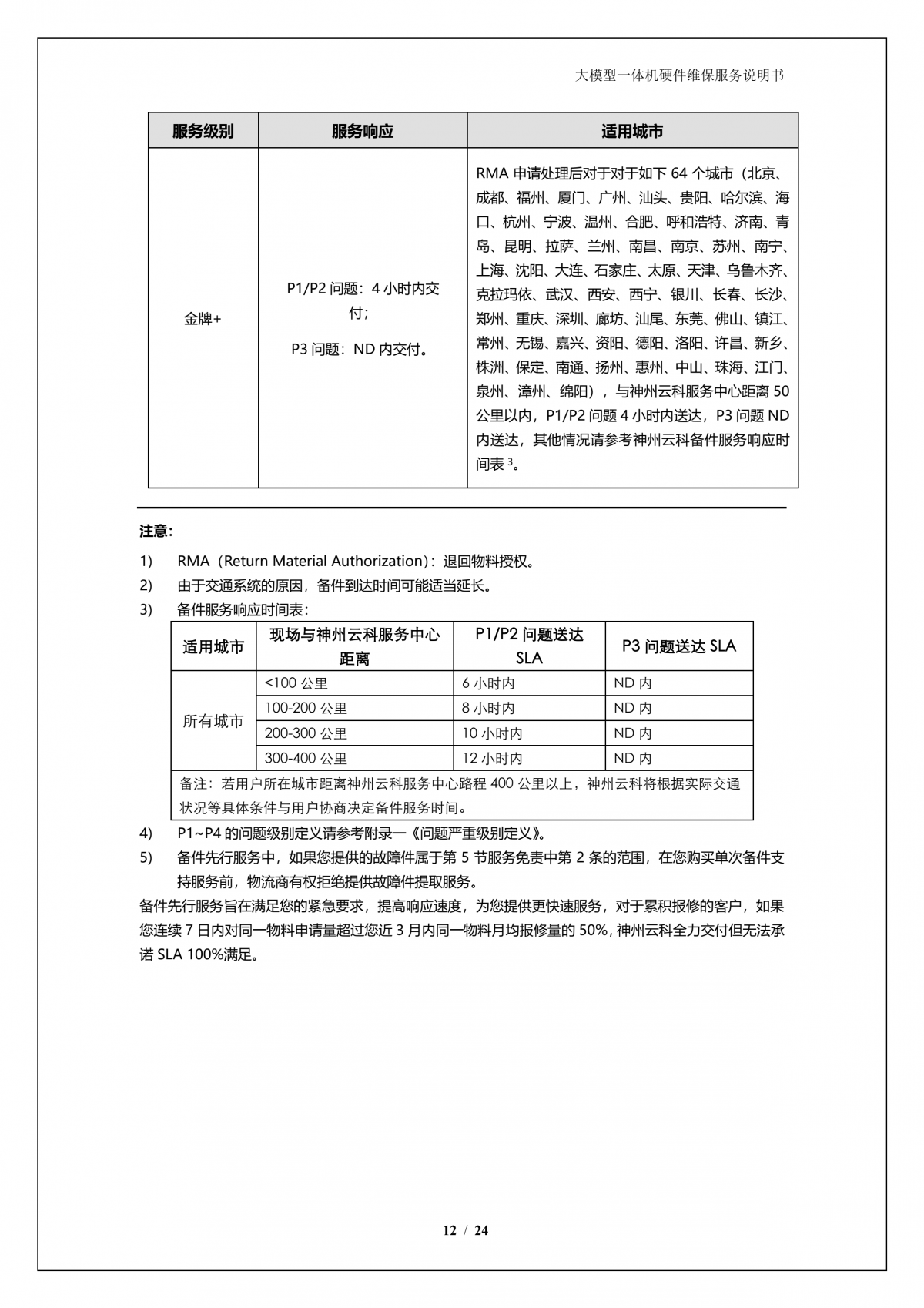 神州A924 DS大模型一体机硬件维保服务说明书_V1.1